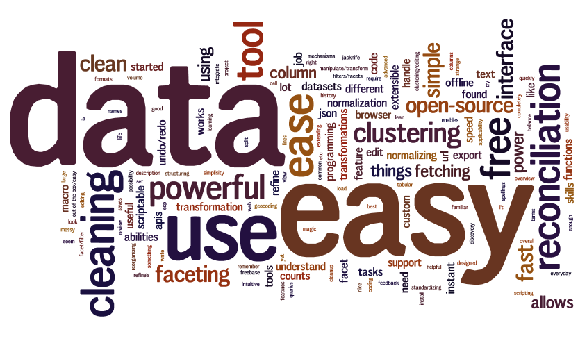 Both in 2012 and 2014 OpenRefine is chosen for its easy and powerful interface to clean large dataset offering reconciliation option. The fact the project is free and open source is also important for a number of user.